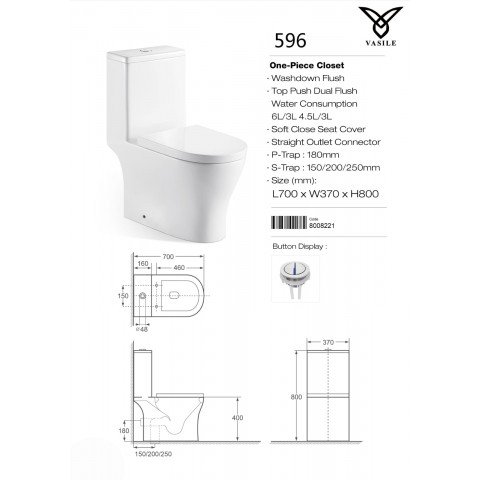 - Vasile V596 One Piece S Trap Toilet Bowl With Geberit System