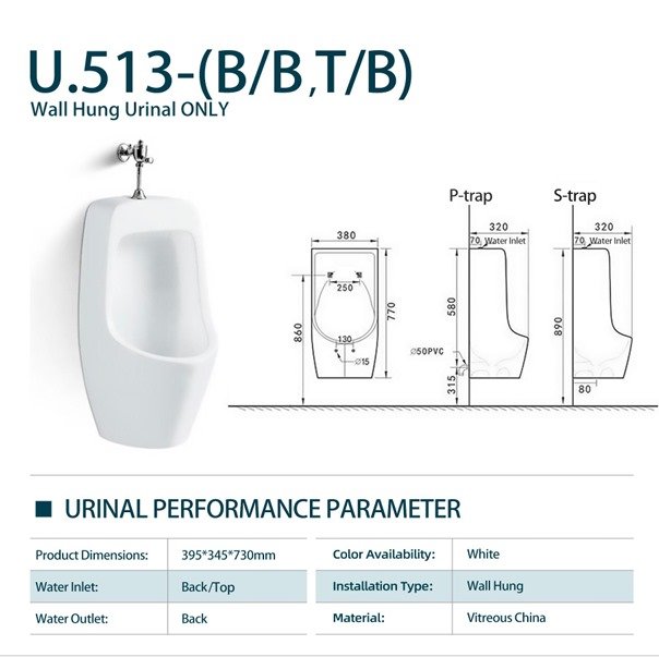 - Wall hung Urinal only